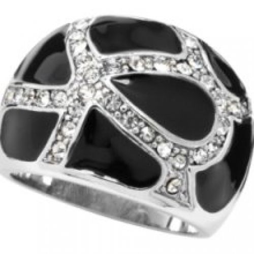 City by City Ring, Jet Enamel and Crystal Dome Ring size 7...