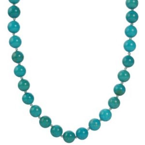 Sterling Silver 10mm Stabilized Turquoise Knotted Necklace, 24"...