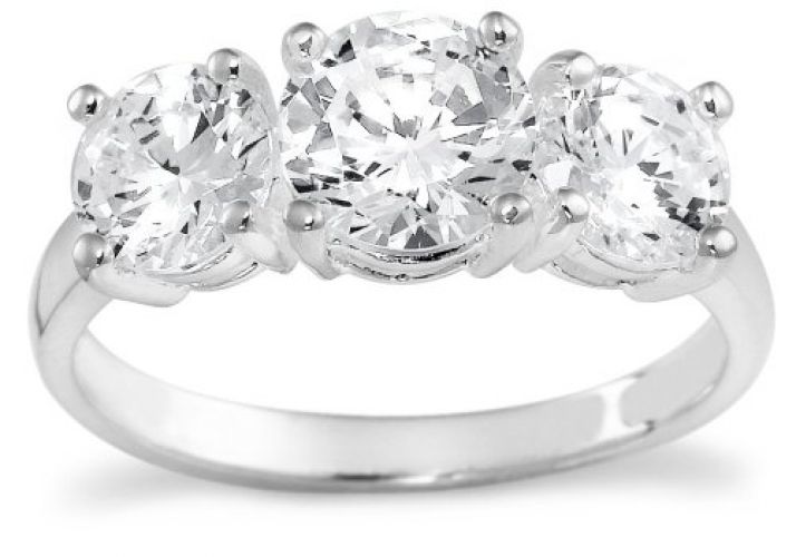 Sterling Silver 3-Stone Cubic Zirconia Ring, Size 7...