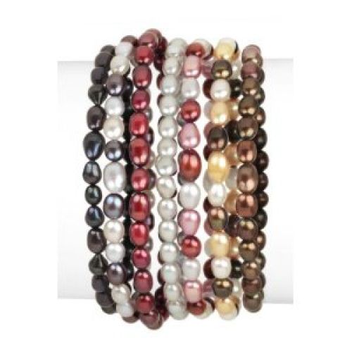 7 Piece Fall Tones Freshwater Cultured Pearl Stretch Bracelet Set, 7.5"...