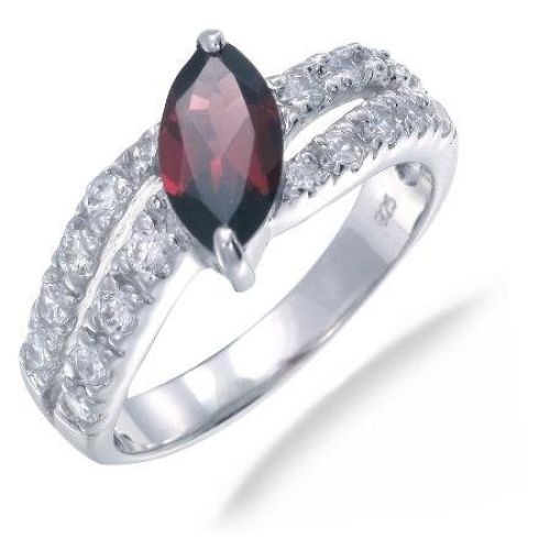 5x10MM Marquise Cut Garnet Ring In Sterling Silver 1.20 CT In Size 6...