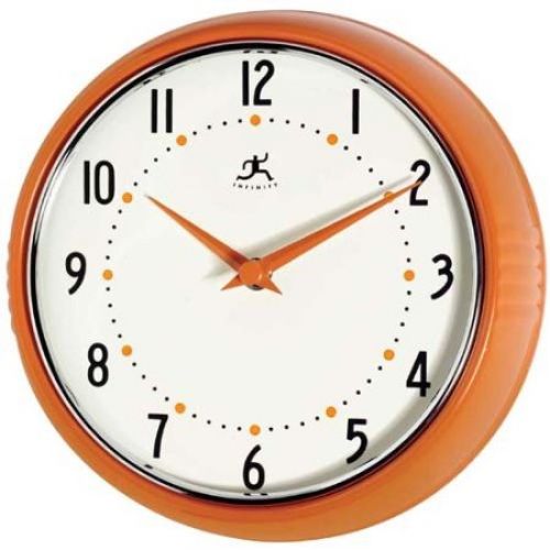 Infinity Instruments Orange Retro 9.5-Inch Metal Wall Clock...