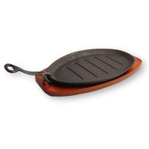 Sizzling Iron Steak Platter w/ Wooden Base...