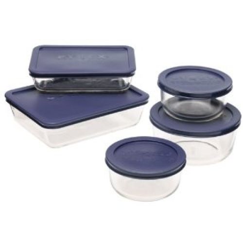 Pyrex 6021224 Storage 10-Piece Set, Clear with Blue Lids...